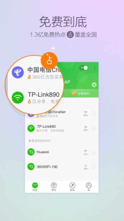 3.免费WiFi地图,随时随地发现您身边的免费WiFi;