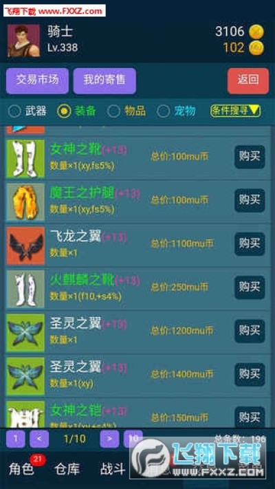 3、自由灵活的交易系统,自由换装搭配,高人气的团战对决。