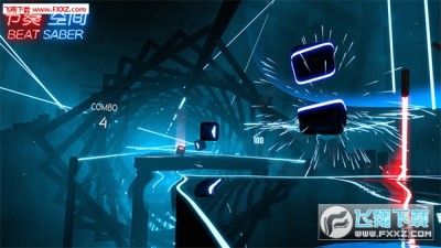 音乐动感,包含小鼓、贝司、嘻哈和摇滚等多种风格类型音乐,本作采用光剑挥砍的方式打击节奏方块,不同方向和方位给玩家带来了极强的爽快感。