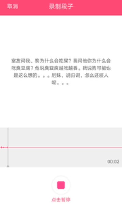 本APP提供段子音频在线录制、段子图文分享、互动交流、福利社区等功等。人人都能做主播,人人都能成为段子手,不拼颜值,拼声音!