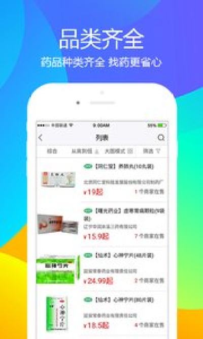 【种类齐全】药品由全国数百家正规药房提供,品种达到上十万。并且分类明确,主要分为常见药品、慢性病药品及保健品。