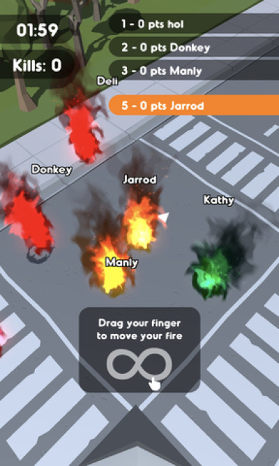 游戏融入了欢快的火焰元素,所有的小人都以火焰呈现的,充满了节日的氛围和乐趣。灵活的操控你的小人不断的探索这座城市,以强大的力量来碾压你的对手,让你的火焰越发的强大,逐渐成为城市最强的领主,称霸到底!