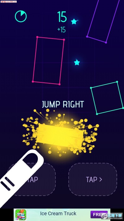 2、游戏规则很简单,只要火柴人成功的着陆到一个方块上面,这个方块就会被点亮,然后继续想下一款跳跃;