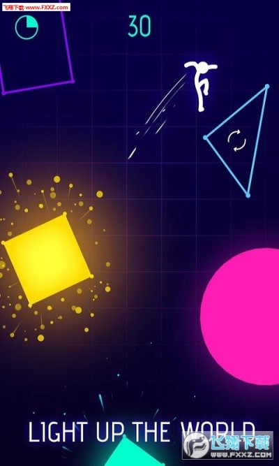 这是一个黑暗的世界,跳跃,翻转和滑动你的火柴人身体从一个霓虹色的方块到另一个,使它们发光,跳跃时收集星星并翻转以提高分数。