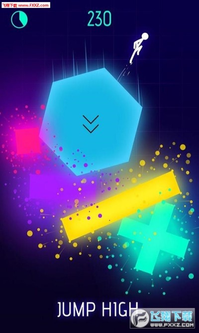 整个游戏视野很美,天空是淡紫色的,被火柴人点亮的方块有各种形状,发出霓虹灯色彩的光芒,火柴人在这个世界中显得很小,但他正在进行意见很伟大的事情,为他人点亮美丽的星空,如果停止跳跃,整个世界中的灯都会熄灭,世界又会陷入到一阵黑暗中。