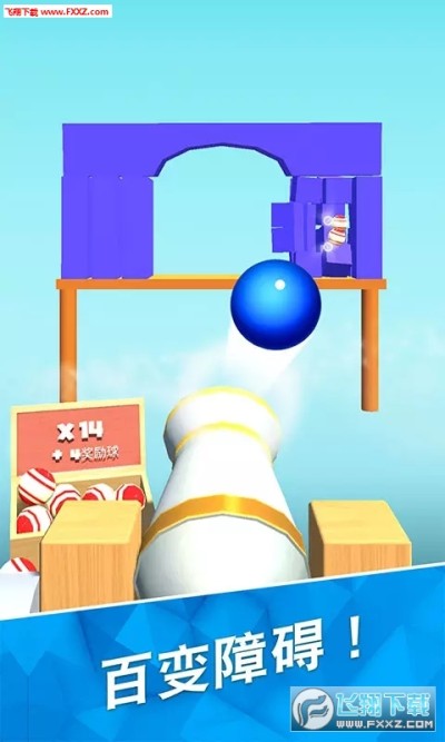 仔细瞄准,点击屏幕,控制球球发射方向,尽可能多地把远处的方块击倒,在限定球球个数内清空方块则闯关成功!