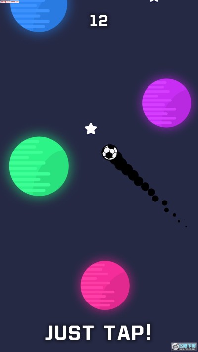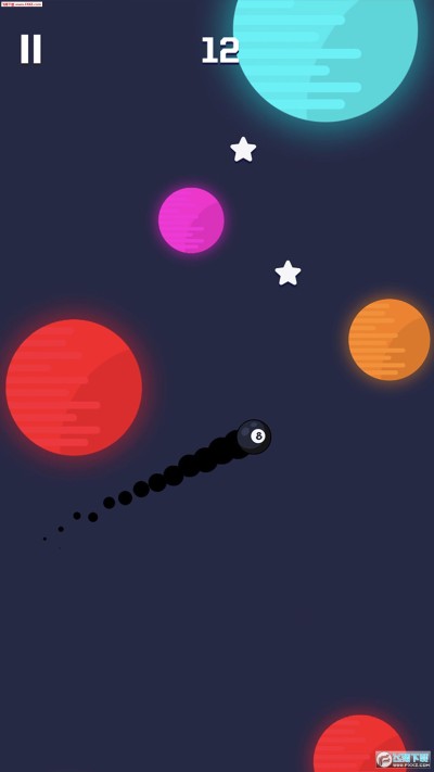 游戏中玩家要操作带有尾巴的小行在宇宙中冒险,你点哪里它就会移动到哪里去,小心不能碰到其它的行星,很考验你的技巧,同时也是很难的挑战,想要获得高分并不容易,收集多的星星然后解锁好看的外形吧。