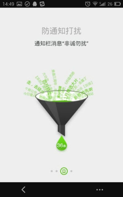 使用安卓手机用户最烦的大概就是无休止的通知栏广告,而360手机杀毒的出现将彻底解决这一烦恼。360手机杀毒用户只需开启“非诚勿扰”模式就可以对应用的通知栏消息进行管理,有用的可放行,弹个不停的则可关它的“禁闭”,而且不会影响到正常的系统通知。