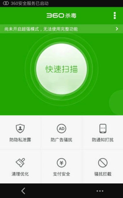 作为中国最大的互联网安全厂商,360手机杀毒的推出尽可能满足更多用户对安全防护的要求,为用户营造安全、放心的手机环境。