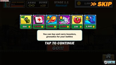 2、购买强大的枪支和手榴弹,同时用你的金币去升级你所有的武器并且投入到战场当中;