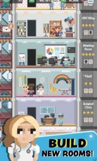 在您设计,管理和定制医院时,通过这个无尽的医院建筑模拟游戏,从零开始建立您自己的医院!