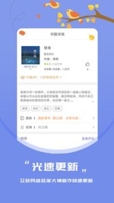 知鸟阅读APP是一个在线阅读海量小说的平台,小说资源多,题材类型多,总有一本是你想看的,知鸟阅读APP的界面设计简洁,板块内容分类清晰,小说更新速度快,并且还有新书推荐,追书不等待,不会闹书荒。