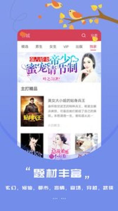 1.内容丰富:言情小说、武侠小说、穿越架空、玄幻修仙、总裁豪门、耽美同人等各种类型,应有尽有,统统免费。