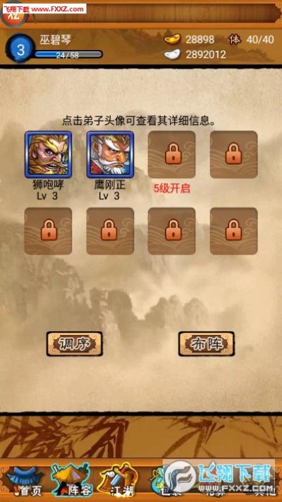 大笑武林采用了经典的回合制战斗模式及RPG人物养成玩法。在游戏内容设定上,游戏摒弃了过于复杂化的系统设定,整体以轻松休闲的玩法为主。自创连招,自由布阵,伙伴自主搭配, 超高的游戏自由度,体验不一样的武侠人生。