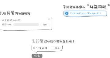 分享:1、先分享视频地址给好友,2、好友点击进入“斗鱼网站”3、分享成功可以领取鱼丸啦!您每邀请一个好友进入就可以获得10个鱼丸哦(每个好友只记一次哦)