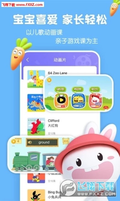 成长兔启蒙app是一款早教类的手机app,这款软件可以为用户提供非常多样的学习类课程,在宝宝玩英语app上用户可以选择各种课程,同时还有超多专业的老师为用户提供服务,非常可靠哦,快来下载吧!