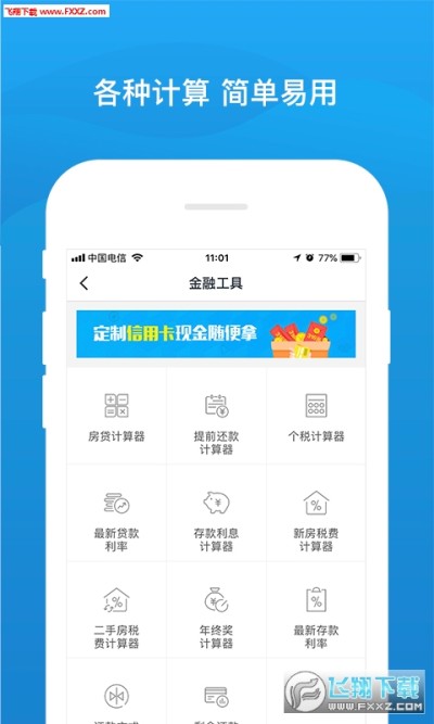 3. 具备个税计算、年终奖税费计算、房贷还款计算等11个金融计算器,满足个人、个体经营户、企事业单位各种计算需求;