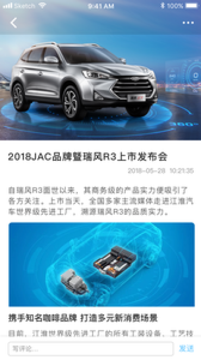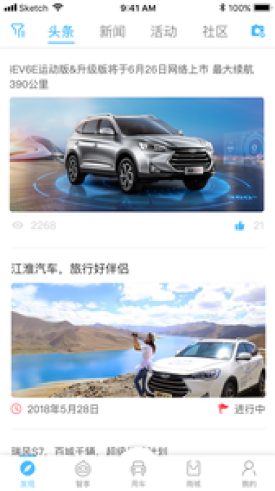 主要包含推荐、资讯、活动、社区总计4个模块。您可以通过推荐、资讯、活动了解江淮汽车的新动态,参加江淮汽车组织的相关活动;您还可以将该内容分享至微信,QQ等第三方平台,每天分享可获取积分;社区是您可以自由发布心情的地方,您可以把您的心情、动态发布至该模块。