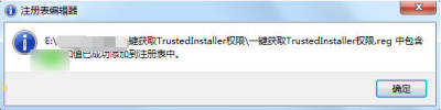 点【是】以后即可成功导入并获取TrustedInstaller权限