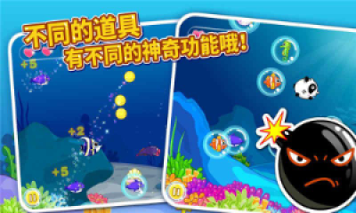 每拯救一条可爱的小鱼就会得到相应的分数,分数达到一定程度将会升级关卡,海底地图会因为你的努力而被点亮,进入一个全新的场景!