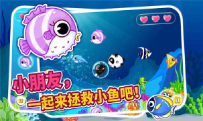 海底世界中的小鱼被泡泡困住了。点击泡泡,可以把小鱼从泡泡中拯救出来 ,但是不要点击炸弹,不然会失去一个生命值哦!海底有淘气的小章鱼会来阻碍小朋友们拯救小鱼,还有霸气的电鳗会帮助小宝贝更快地拯救小鱼闯关哦~