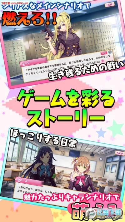 让玩家们从众多被关闭在学校里的少女们之中,挑选出自已喜欢的角色编组三人队伍,并使用各种华丽大绝将不断来袭的敌人给一一打倒的指令战斗式角色扮演RPG游戏。游戏中除了多样的人物养成玩法与刺激的战斗模式外,还加入了丰富的剧情故事要素,让玩家们可以随着剧情推进,深入本作的故事背景,解开隐藏在一切事件背后的真相。