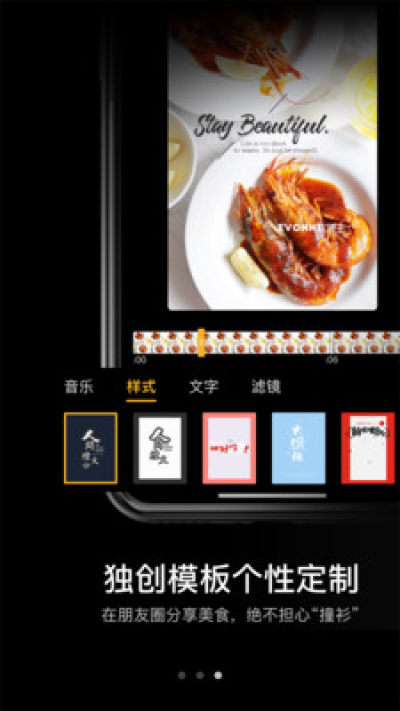 -可以在不影响模板品质的前提下,自定义贴纸、滤镜、音乐与文字等内容