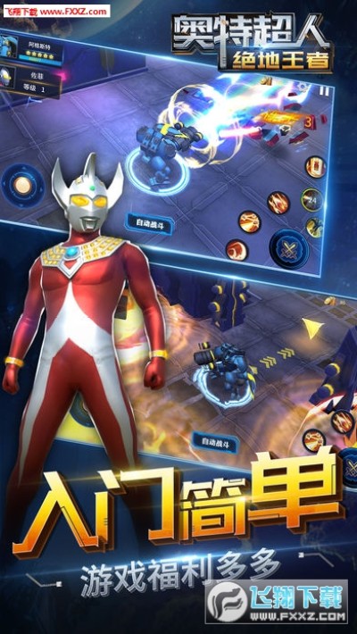 奥特超人题材的最新力作,简单的点击屏幕即可移动,攻击,躲避。操作简单而又深度,任何人都爽到,玩爆。是一款全新的45度俯视角的3D手游。在游戏中你作为一个奥特超人借助机甲的力量来击败来自外宇宙的邪恶军团。
