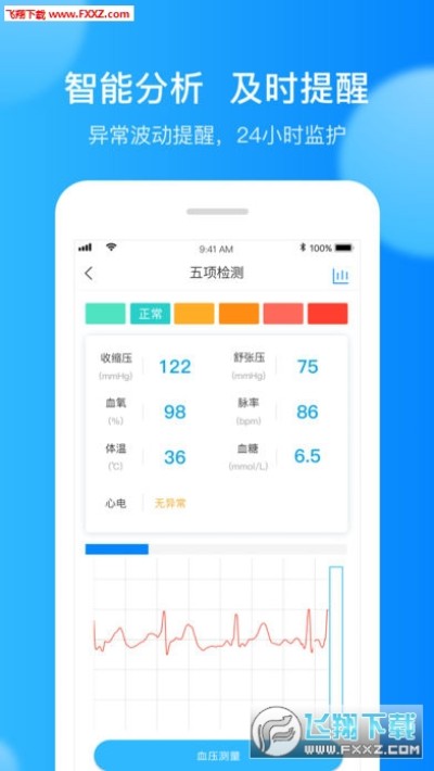 血氧:将智能血氧探头夹住手指,可快速方便测出血氧及脉率状况;