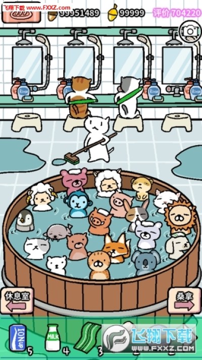 邀请各种动物朋友,购买沐浴设施,打造有个性的温泉吧。木浴池、银浴池、大理石浴池、黄金浴池,一切都准备好了。