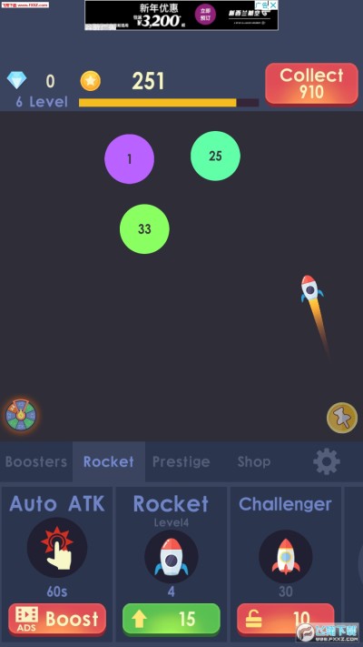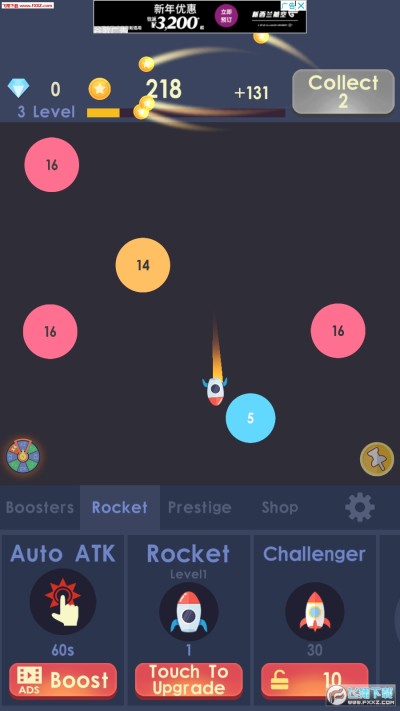 放置火箭手游是一款相当趣味的手机点击休闲游戏,在游戏世界中玩家们就将操纵我们的小小火箭进行各种趣味碰撞和不断的撞击。游戏玩法放松趣味,很适合玩家们点击休闲。想要试玩游戏的话那就速速下载体验吧