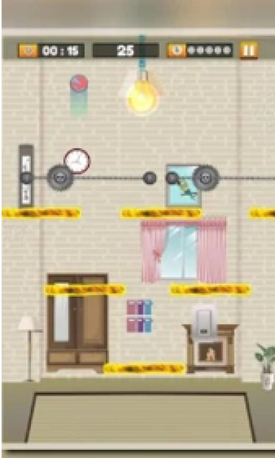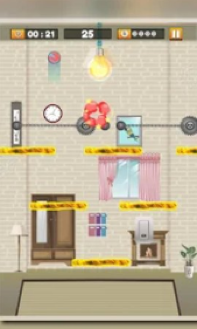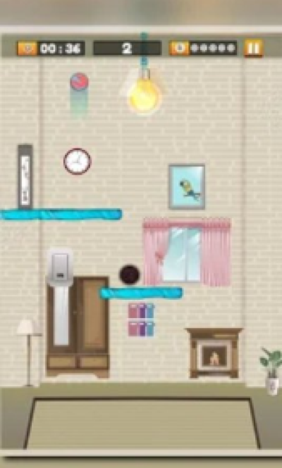 有5次机会关掉灯,否则你会失败。在这个益智游戏中你必须用你的大脑。通过在屏幕上拖动手指来精确设置位置。抬起手指放下球。只要游戏没有时间限制,你就可以做任何事情。注意许多障碍物,因为它们会破坏球,你不能关闭灯。