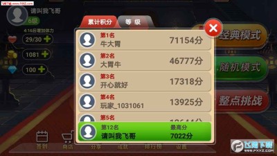 3、三大模式,经典模式、随机模式、整点挑战,每次通关后悔获得积分,并且有一个累计积分的排行榜。