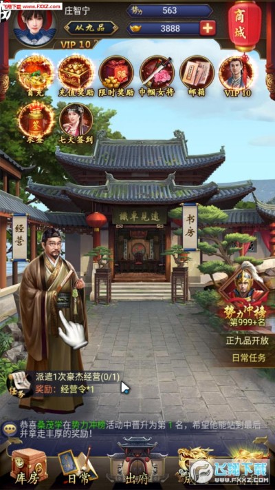 回到大明当王爷手游下载是一款好玩有趣的古代宫廷模拟养成游戏,丰富多样的游戏玩法,精致逼真的游戏场景,带你重回古代,体验当王爷的生活。喜欢的朋友们快来下载吧!恭喜官老爷金榜题名,获皇上御赐从九品官位,接旨上任!官场云涌,派系林立,步入官场是做个安静低调的九品芝麻官,还是权倾朝野,坐享天下美人的一品摄政王?