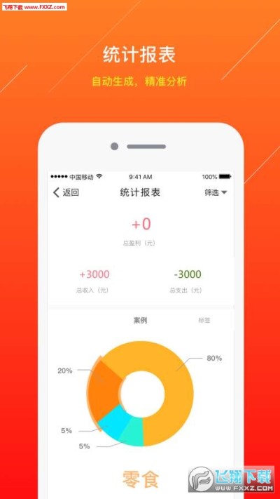 ⑤专业的数据统计分析:销售统计、流水查询、分析报表、智能提醒