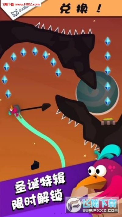 3.精致卡通的游戏画面,刺激有趣的飞行挑战,谨慎的躲避那些尖刺,让你能成功的获得更多钻石。