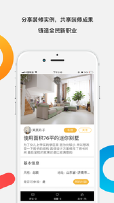 你可以记录装修生活的点滴,为每一位后来的修友实现所见即可得的装修提供宝贵素材,共同改变固有家居装修现状。