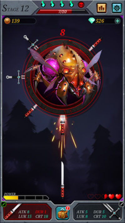 将刀扔进怪物并击败它们。 收集金币并购买新刀。 每五级都由老板辩护,将他们打败到一个新的水平。