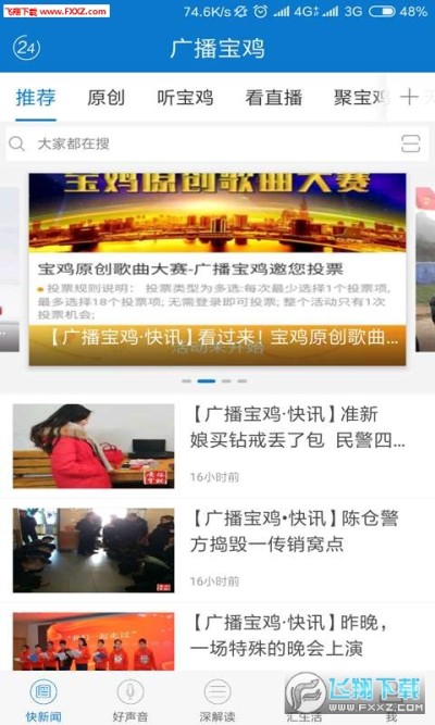 广播宝鸡app是一款由宝鸡人民广播电台推出的手机app,这款软件主要是针对宝鸡人民打造的一款新闻生活服务端,在广播宝鸡app上用户可以观看宝鸡的新闻节目,同时也能了解宝鸡的最新动态等等,需要的快来下载吧!