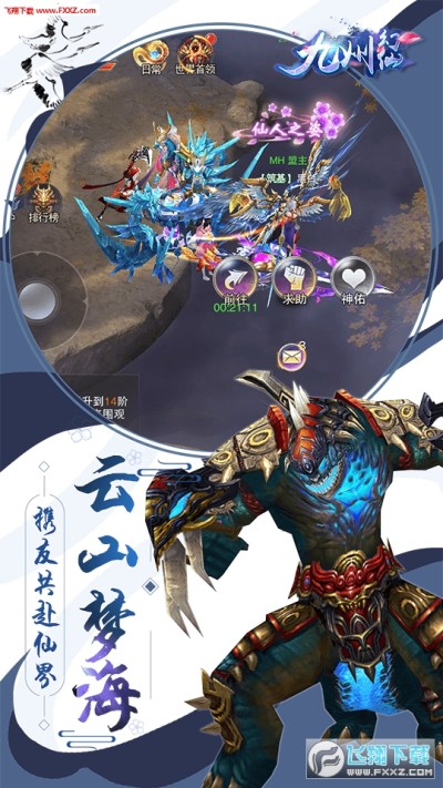 九州幻仙是一款全新好玩刺激的大型多人在线仙侠手游,游戏拥有着精致唯美如梦如幻的仙侠美术画面,各式各样的神器装备,萌宠坐骑等你领取,喜欢的小伙伴快来下载吧!还有机会邂逅一段浪漫的感情故事,开启你的双修之旅,携手共走天涯。