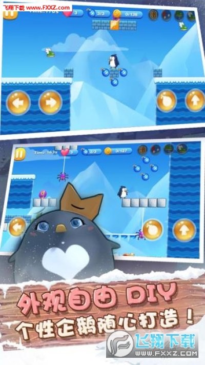 企鹅努力飞是一款非常好玩的休闲类游戏,这款游戏的主角是一直企鹅,玩法其实跟超级马里奥差不多,还蛮有趣的,在企鹅努力飞游戏中玩家只需要控制企鹅穿过障碍、避过怪物,顺利通关就可以了哦,感兴趣的快来下载吧!