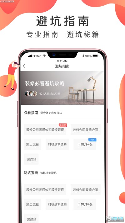 专业指南,整理收集装修中的常见陷阱,让你轻松识别靠谱装修公司,看懂装修合同、报价单、动线布局、水电改造、挑选建材等等装修技巧;