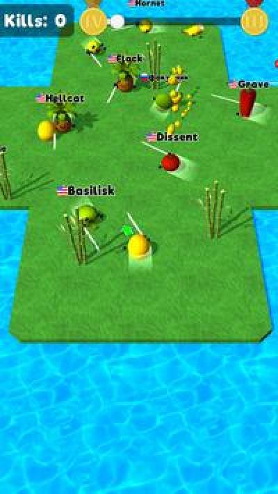游戏延续了最近挺火的io竞技游戏的玩法,玩家在这里将操控不同的水果在地图之中横冲直撞。