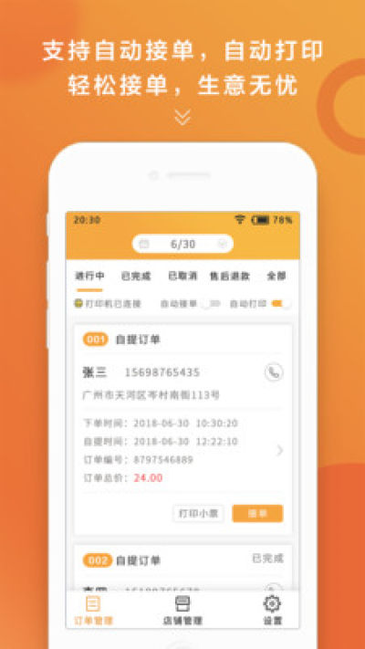 主要功能是接受并处理用户订单、处理退款、门店商品管理、门店对账。