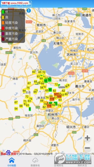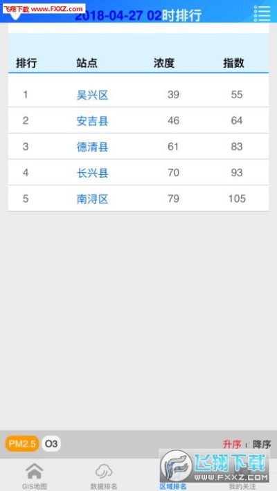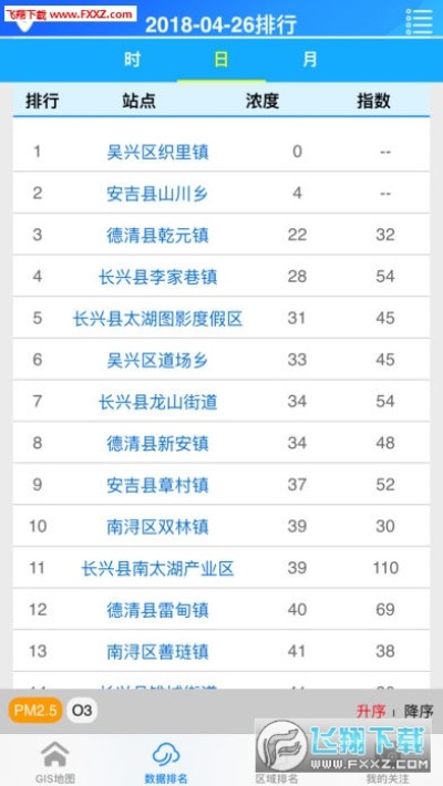 能实时查看湖州市城乡空气监测点的空气质量,包括站点排名,添加关注站点,区域排名等