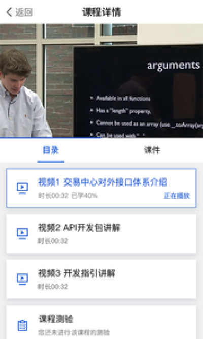 课程及测试:生动的授课方式、详细的课件内容和课后测试帮助用户更快地掌握银行间系统接入开发知识。