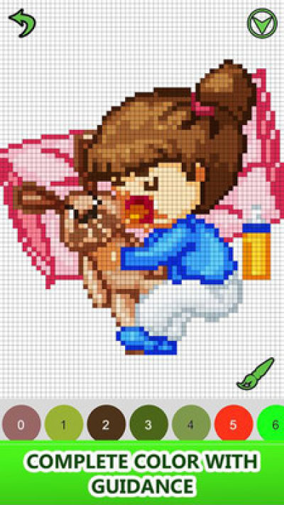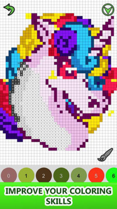 像素着色艺术是放松和冥想的好方法。练习色彩搭配技巧,准确度和精密度。选择各种各样引人入胜的图片和颜色,创建自己的作品!