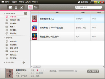 内置京东电子书刊频道,提供丰富的免费与付费内容,这些内容可直接下载到LeBook客户端