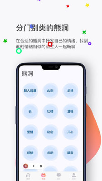 熊洞语音™ 是一个完全基于语音的树洞类情感倾诉渠道,一个基于语音倾诉内心故事的APP,更是一个纯净的陌生人交友平台。