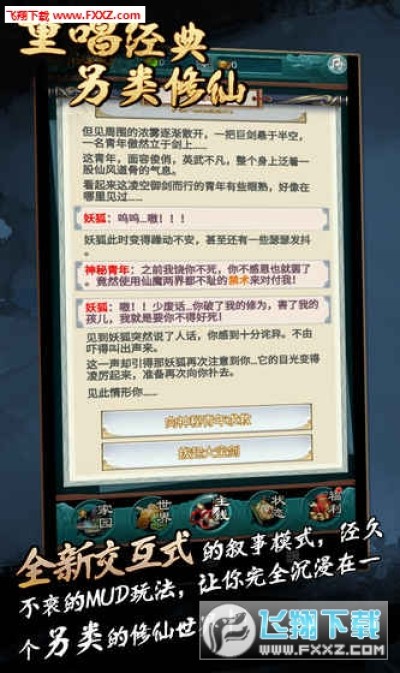 全新交互式的叙事模式,经久不衰的MUD玩法,让你完全沉浸在一个另类的修仙世界中;